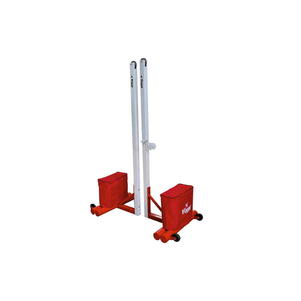 BADMINTON-POLE SQUARE MOVABLE 50MM WITH PLASTIC WEIGHT STACKS